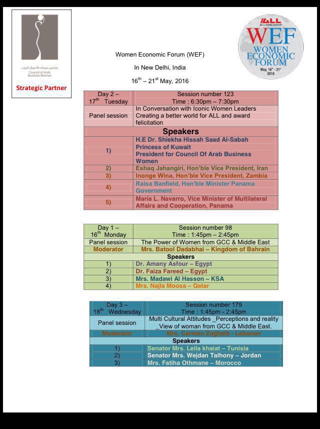 مؤتمر (women economic forum (WEF) وذلك الفترة من 16 مايو حتى 21 مايو 2016 " بجمهورية الهند